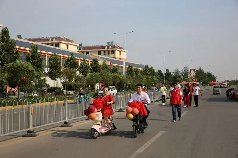 农历四月十八,在滕州市级索镇级索社区同济大街,上演了一场文明又环保的电动车婚礼。没有豪华的迎亲车队,没有喧天的锣鼓鞭炮,彰显着低碳环保、文明和谐的婚庆新风,这样简朴又有创意的婚礼赢得在场亲朋连连称赞。